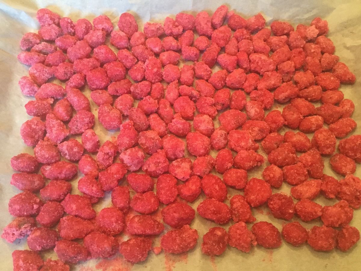 Une fois la dernière opération effectuée, étalez les pralines sur la plaque du four recouverte de papier sulfurisé et faites les sécher 1 heure à 60°.