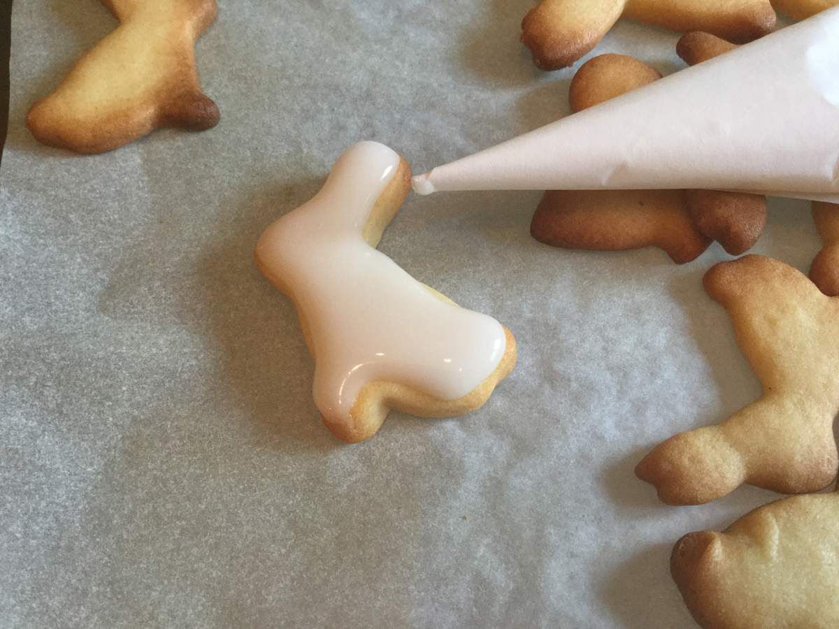 Déposez un peu de glace royale dans un cornet et commencez par tracer le tour des biscuits.