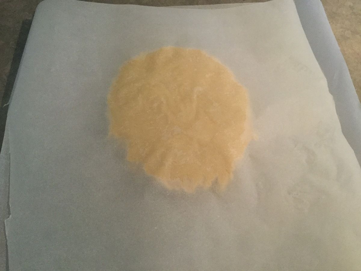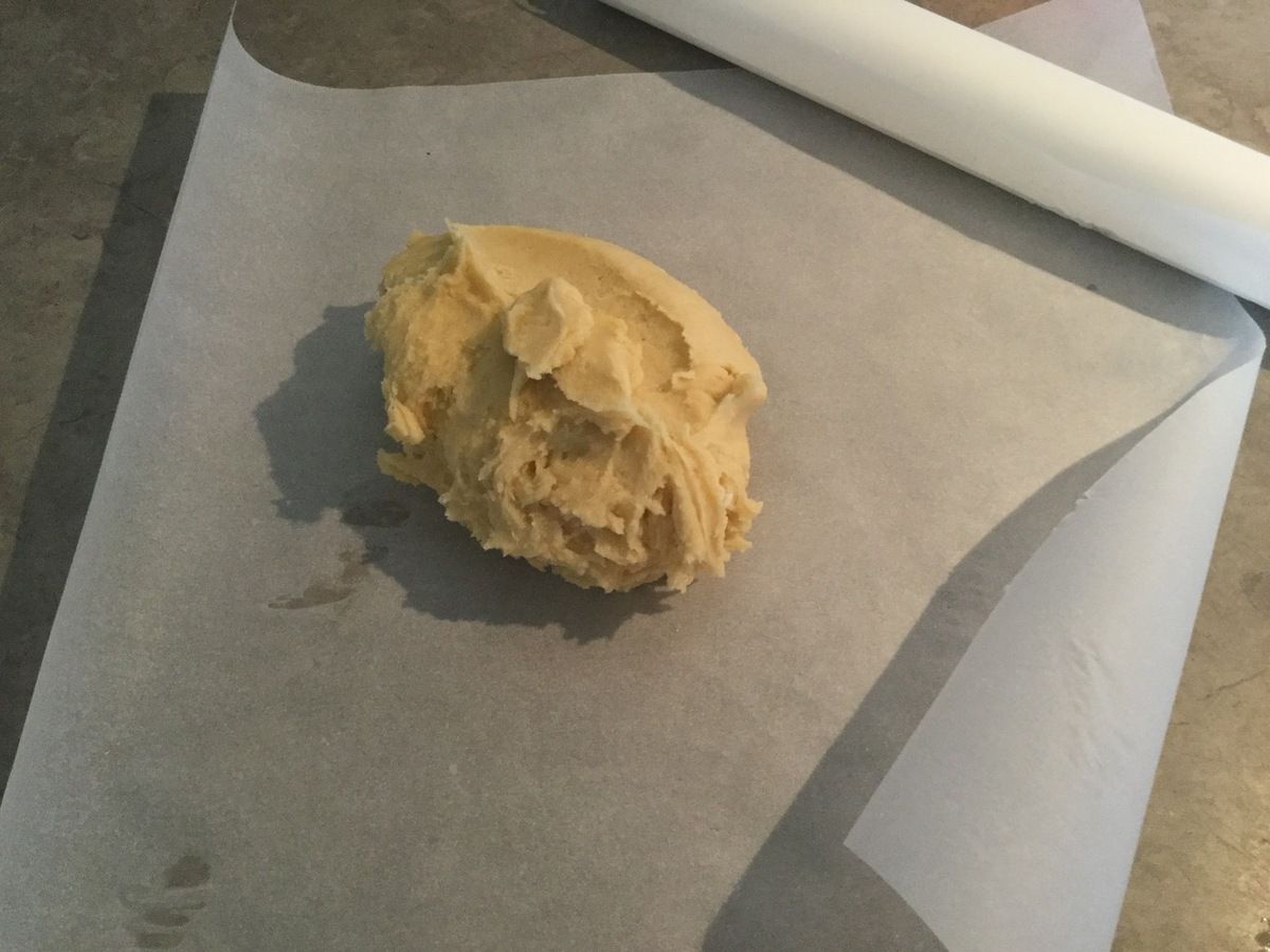 Déposez la pâte sur une feuille de papier sulfurisé et recouvrez-la d'une autre feuille de papier sulfurisé.
