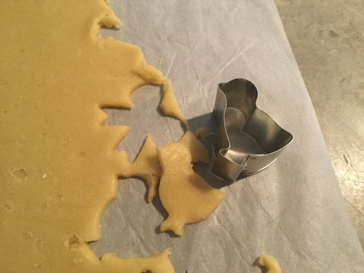 Vous pouvez rajouter 3 g de levure chimique, mais comme les biscuits vont être décorés, il est préférable que la surface soit bien uniforme. Je n'en ai pas mis.